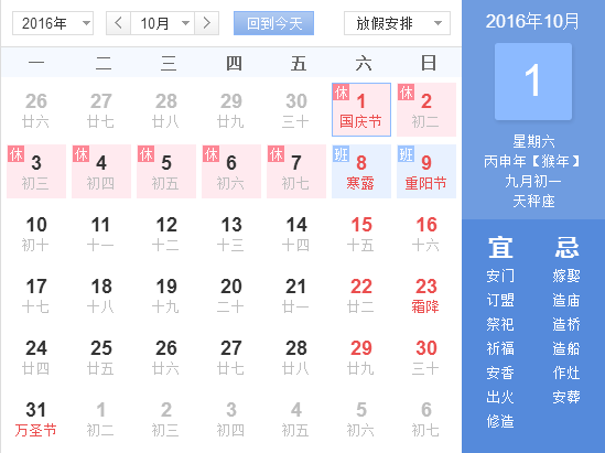 2016年國慶請假攻略: